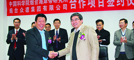 煙臺眾德集團與中國科學(xué)院煙臺海岸帶研究所簽訂戰(zhàn)略合作協(xié)議,采用酶解超聲波技術(shù)萃取海藻液,研發(fā)海聚能系列海藻肥。