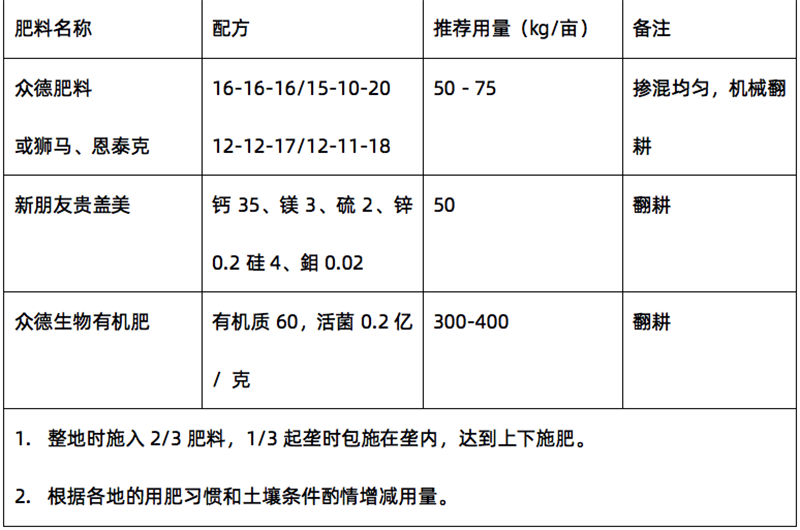 ?。?)推薦施肥套餐(根據(jù)目標產(chǎn)量、地域、品種、地力等適當調整)