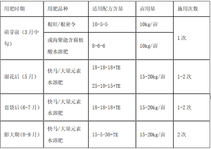 C、磷肥適當(dāng)調(diào)減,重在秋后基肥,其次夏季花芽分化期前。